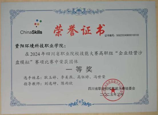 2024年“中银杯”四川省职业院校技能大赛(高职组)企业经营沙盘模拟赛项夺得一项省赛一等奖