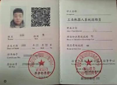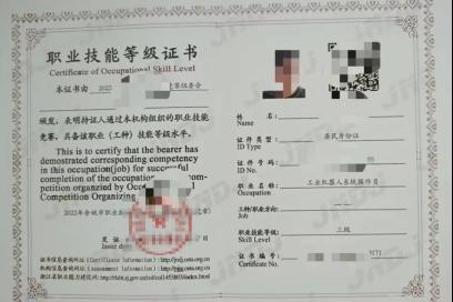本专业积极推动学生职业能力认证,毕业生可考取多项具有行业认可度的职业等级证书,包括但不限于:中级电工、工业机器人系统运维员、工业机器人系统操作员、人工智能应用工程师、工业机器人应用工程师等,为学生职业发展提供有力支撑。