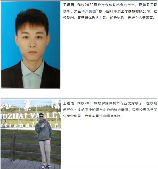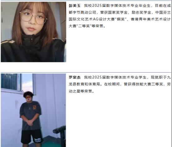 数字媒体技术专业已与四川丁小豆电子展商务有限公司开展校企合作,共同搭建电商直播运营订单班,与成都瑞尔特企业管理有限公司共建AI视频剪辑兴趣班,企业将深度参与订单班人才培养全过程,通过提供真实项目实践、配备企业导师、开通优先就业通道等方式,全方位支持学生成长,真正实现“入校即入企、毕业即就业”的培养闭环。