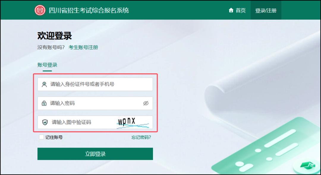 注册成功后,在登录界面输入账号、密码和验证码,点击“立即登录”。