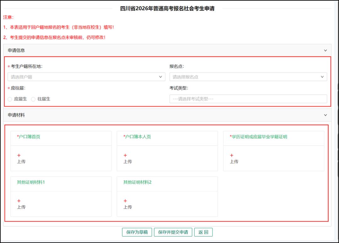 社会考生,指在户籍地外就读回户籍地报名的考生、往届生、同等学力考生、外省回川报名考生等。社会考生须先进行报名资格申报,通过审核后方可进入报名信息填报流程。
