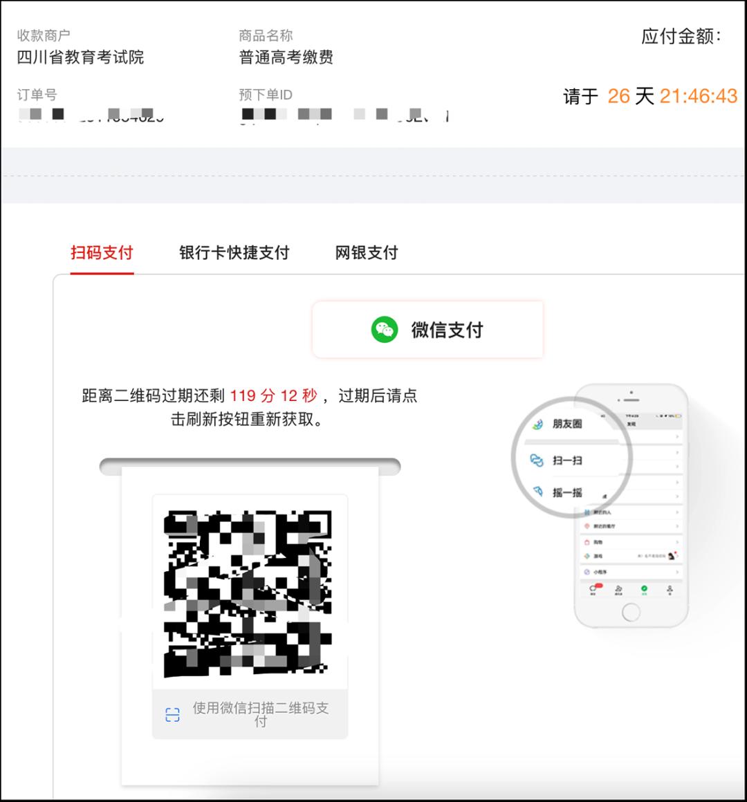 考生核对缴费金额后点击“前往缴费”,输入考生证件号码,页面会跳转缴费支付界面,考生选择合适缴费通道进行缴费。