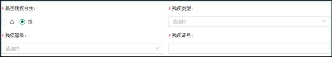 如果“是否残疾考生”选择“是”,需要填写相关信息。