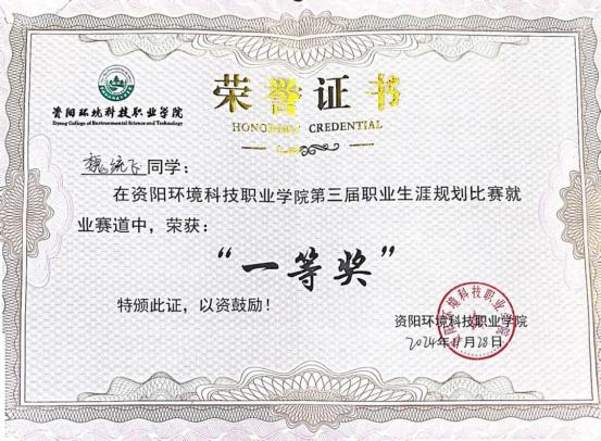 荣获2024年第三届全国大学生职业规划大赛校级一等奖