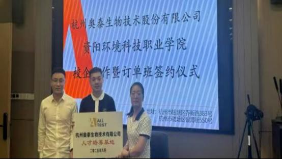 本专业已与杭州奥泰生物技术股份有限公司和杭州安旭生物科技股份有限公司达成校企合作项目,校企双方将共建“奥泰生物班”和“安旭生物班”两个订单班。订单班将根据企业岗位需求定制课程体系,嵌入前沿技术内容与实操实训模块,并由企业提供对口实习岗位。项目实施后,将有效提升药学、食品类专业学生的就业竞争力,推动实现更高质量就业,为深化产教融合、提升高素质技术技能人才培养质量奠定坚实基础。