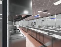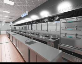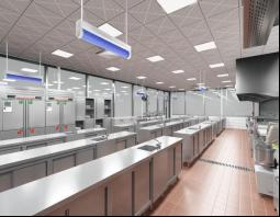 配备不锈钢操作台、多功能组合炉灶、蒸烤箱、给排水系统、排烟换气系统、货架货柜、冷藏设备、燃气/电力设施及各类专业厨具,全面支持中餐烹饪、菜品设计与创新、宴会设计等实训教学。