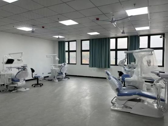 目前,学校已投入资金近200万元,建设了口腔卫生保健实训中心。该中心共设6间实训室,涵盖模拟诊疗区、预防保健实训区、数字化实训区及社区宣教情景教室,配备系统化教学资源与设备,支持学生在校开展情境化学习,实现“教室与诊室、理论与实践”的有效衔接。学生可在校内及合作机构进行口腔辅助诊疗、口腔照护、清洁、牙菌斑清除、牙结石刮治、牙齿涂氟、窝沟封闭、牙齿美白、口腔健康与疾病监测等多项实训,并在口腔医疗机构及相关健康监测单位完成岗位实习。