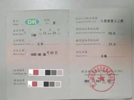 口腔修复体制作工职业技能等级证书