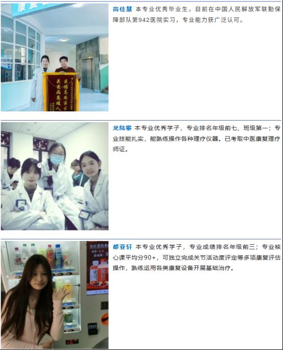 专业课程包括《康复评定技术》、《运动治疗技术》《作业治疗技术》、《常见疾病康复》、《传统康复技术》、《言语治疗技术》《康复治疗记录的撰写》等。通过系统学习与高标准训练,学生可熟练掌握核心护理操作与职业规范,毕业即具备直接上岗能力。