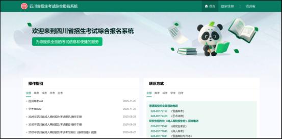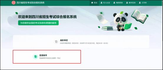 在浏览器地址栏输入“https://zhbm.sceea.cn”,进入“四川省招生考试综合报名系统”首页。