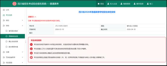 参加2026年高考体检的考生(含高职单招考生)须登录四川省招生考试综合报名系统(https://zhbm.sceea.cn)填写既往病史、查看体检安排、确认体检结果和提交复查申请。